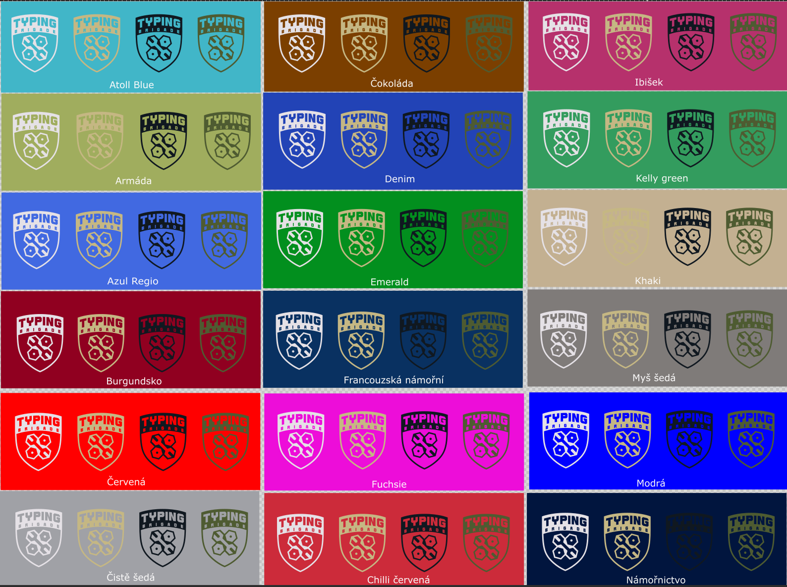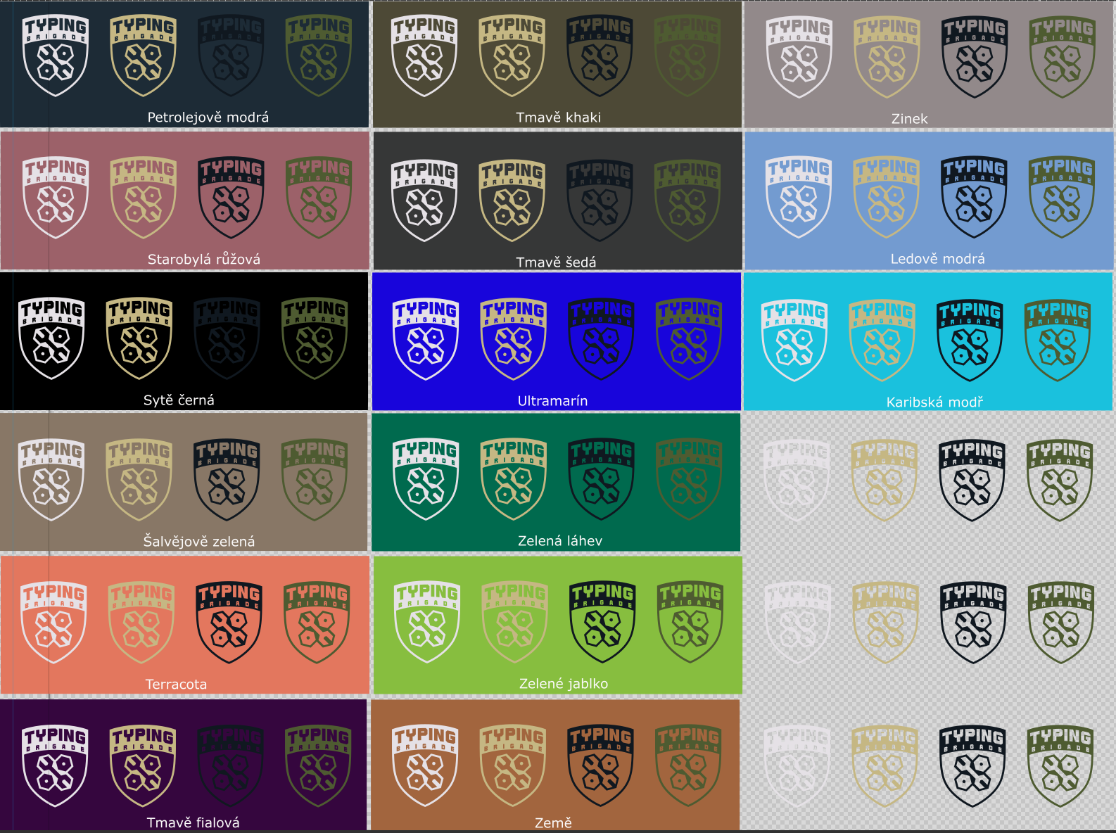 Ještě jsem se nedostala k té úpravě loga, protože všechny varianty loga v křivkách, které se ke mně dostaly, jsou "ty druhé" - s větším fontem "brigade" a robustnějšími liniemi, ty, co jsou na tom barevném vzorníku dole.
