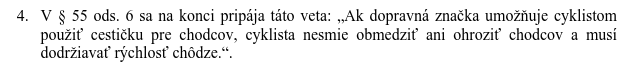 zakon sa netyka chodcov ani bezcov, alejazdy cyklistov/kolobezkarov po chodniku