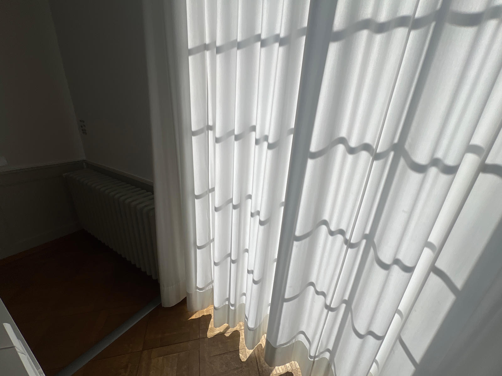 NEI: na to je ta zed prilis kratka, i tam by musely byt na vysku a to by nebylo hezky. V prostoru kde sedim ja je ta zed sirsi takze mame dva normalni radiatory vedle oken.