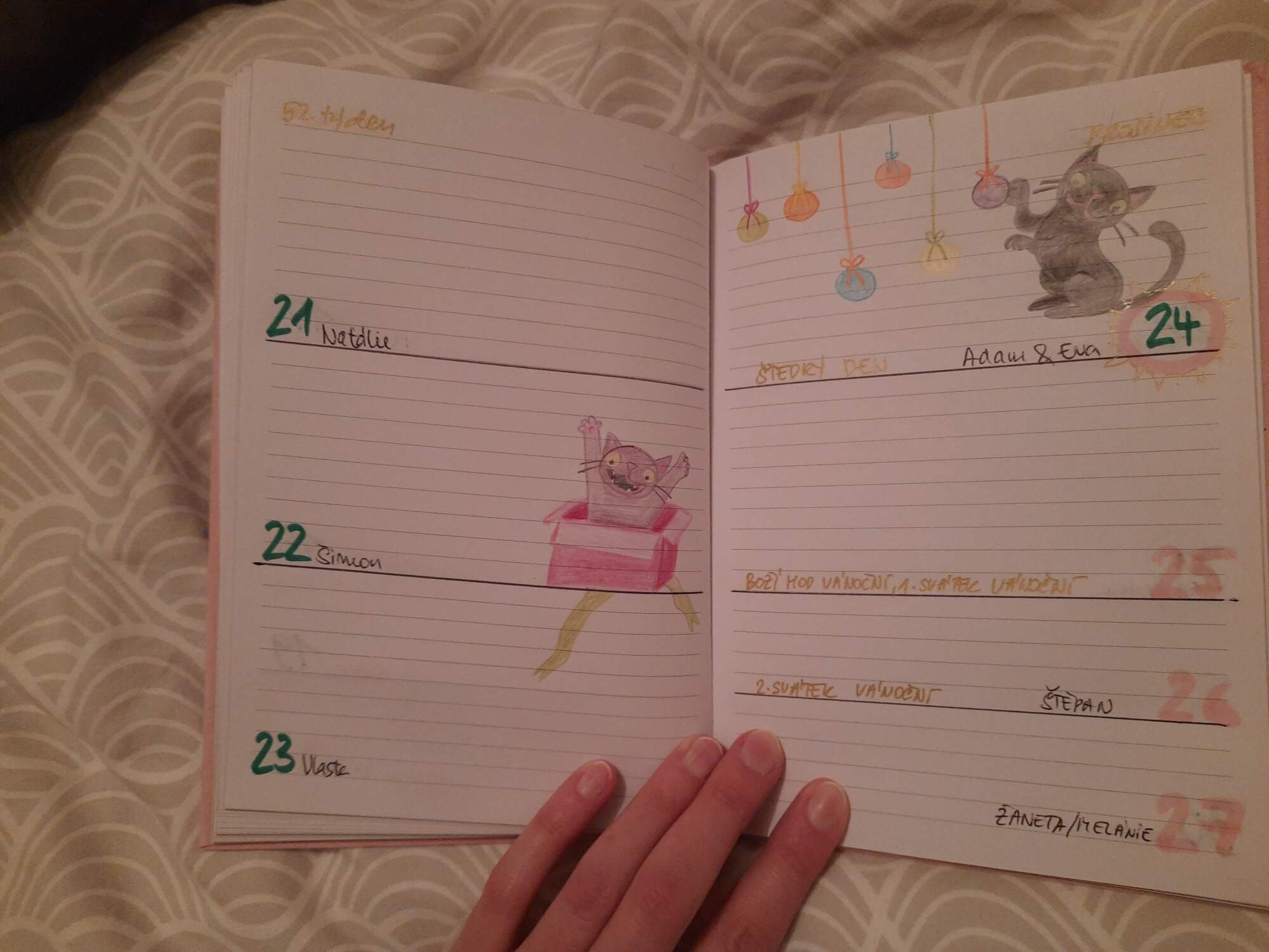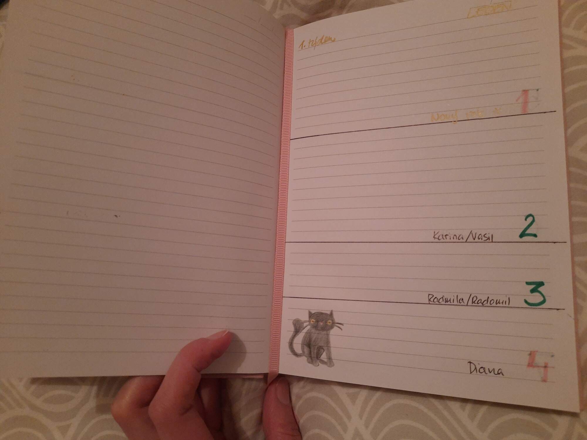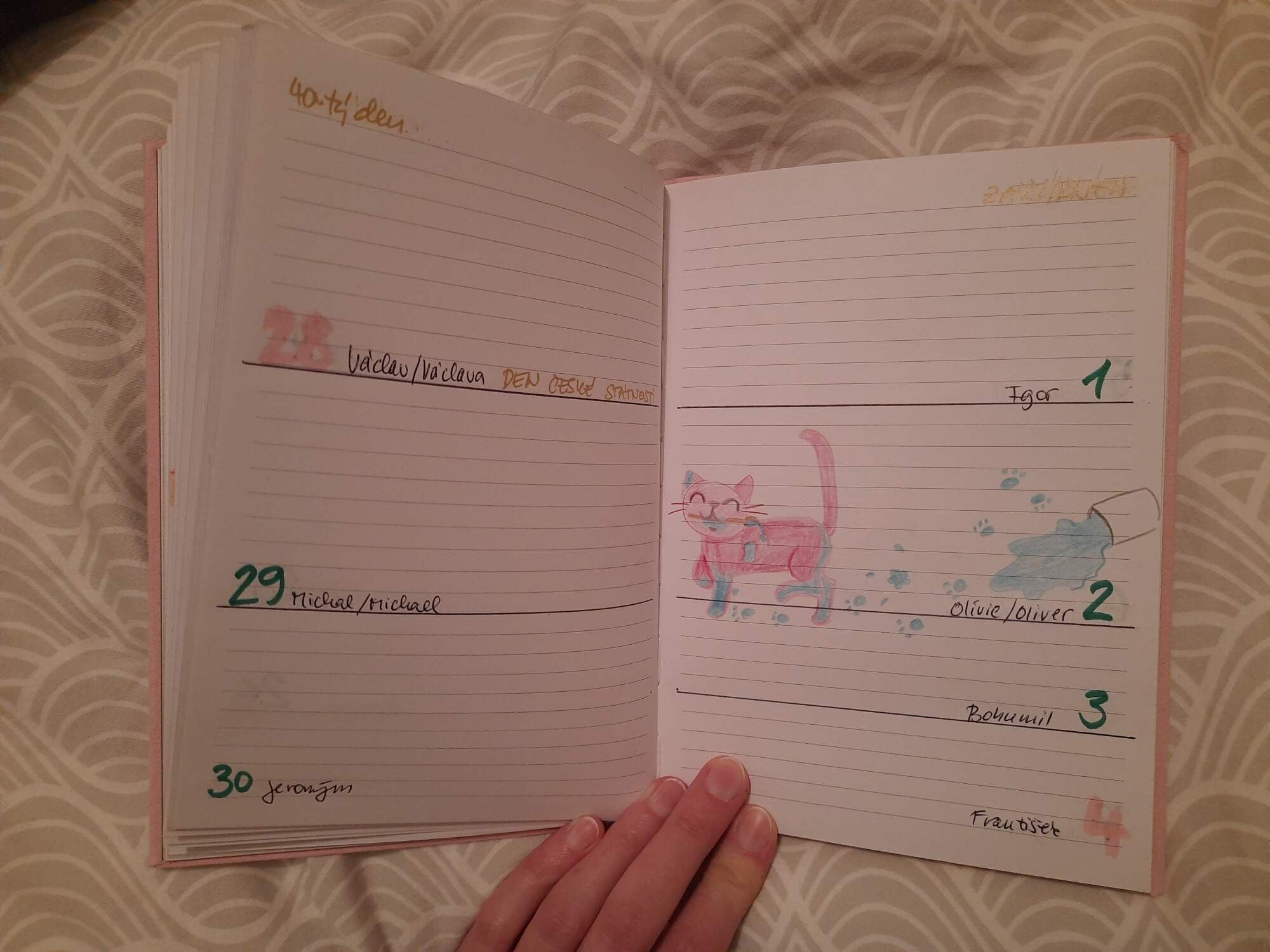 Udelala jsem pro infantilni kamaradku infantilni diar, kocicka az dve na kazdou dvojstranku. Misty se vetrel misto kocicky kralik.