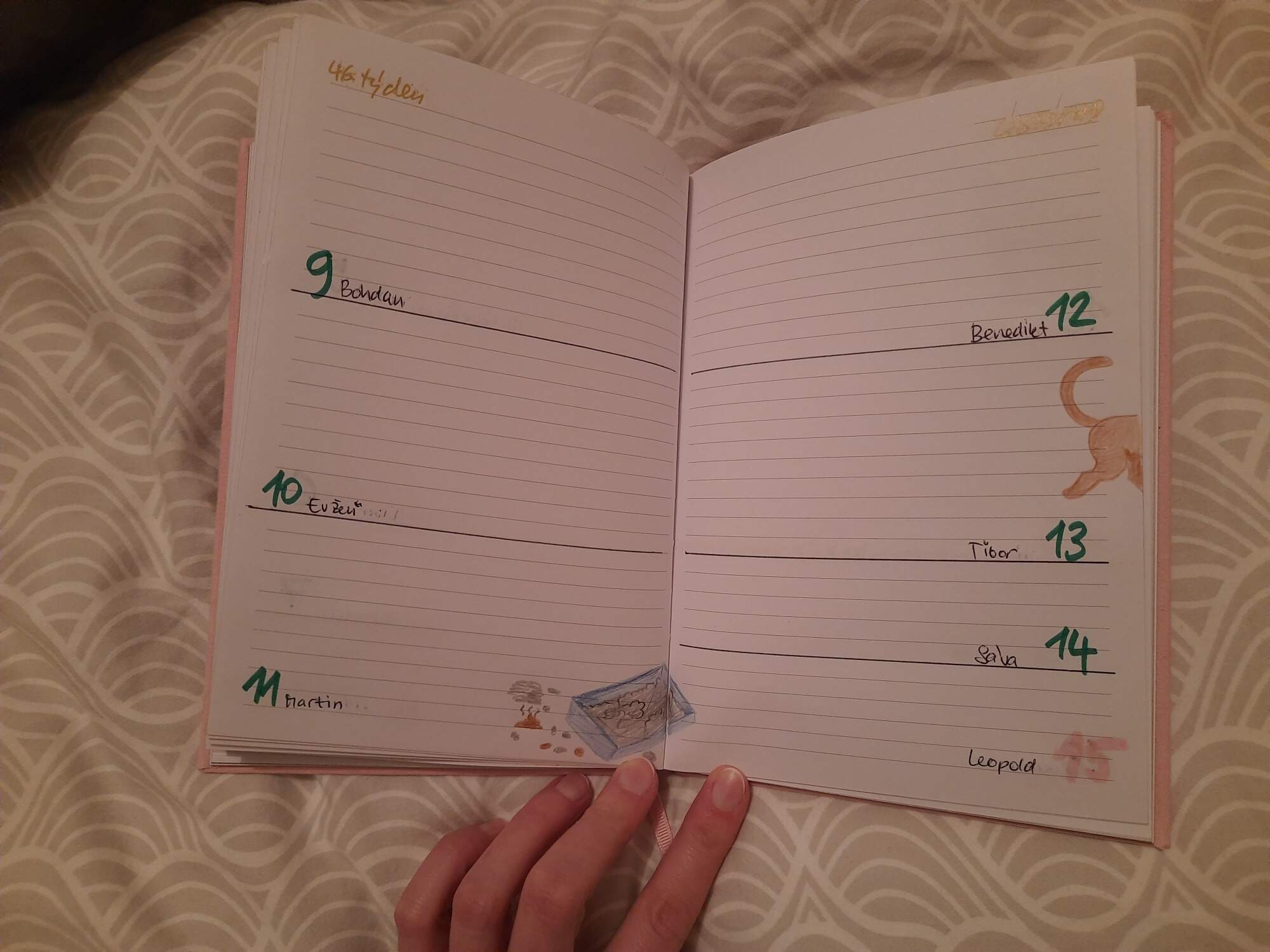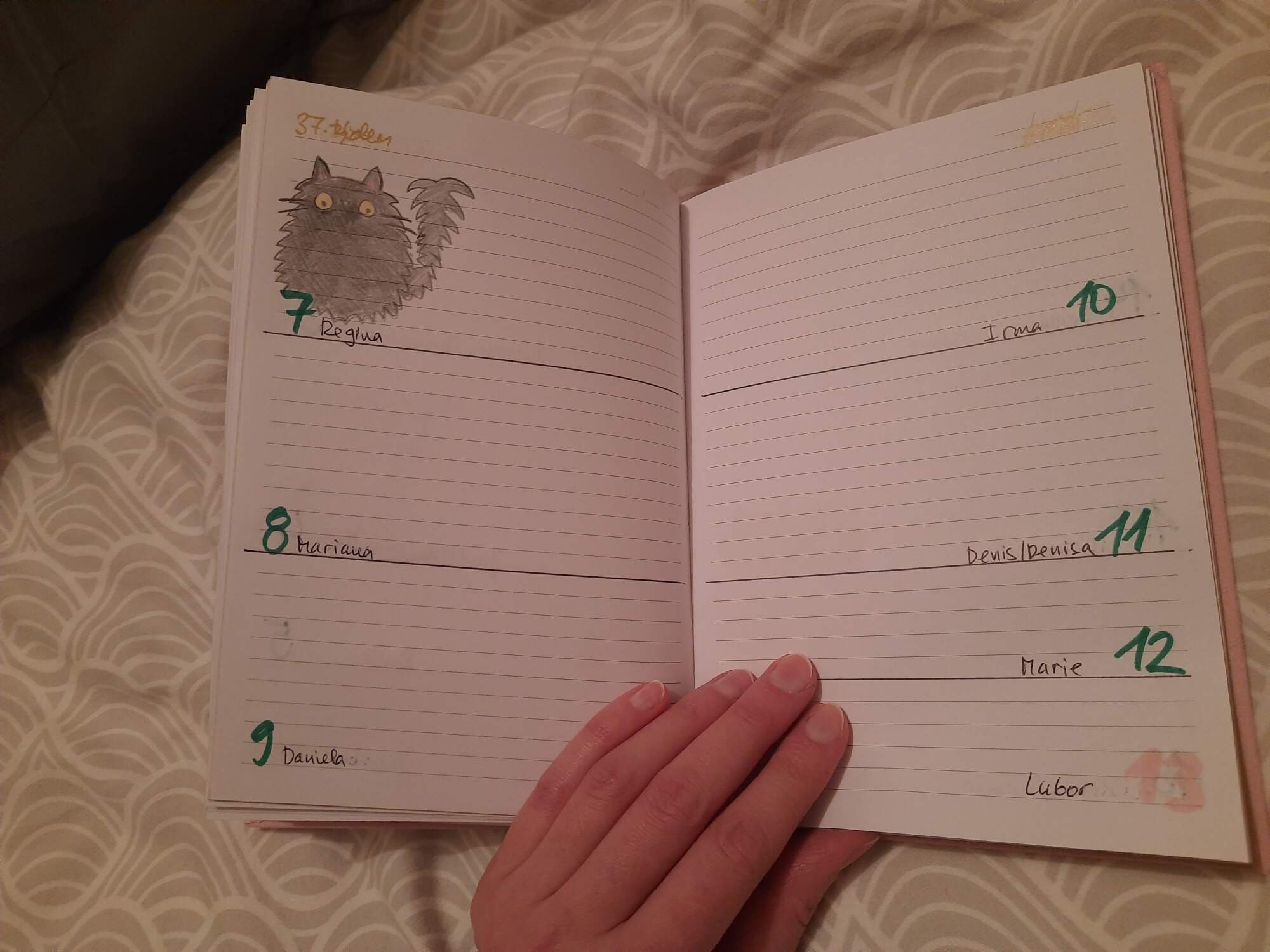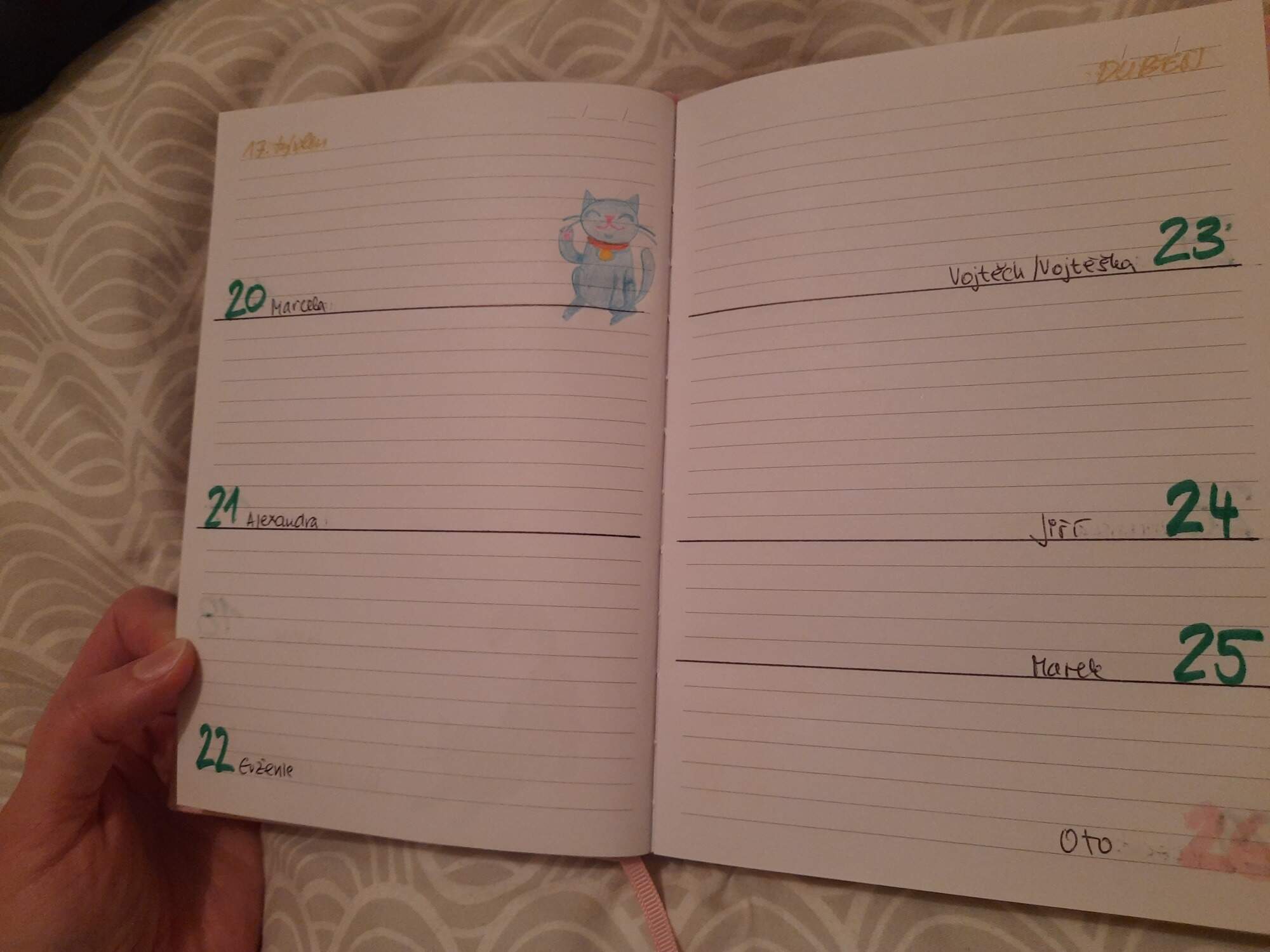 Udelala jsem pro infantilni kamaradku infantilni diar, kocicka az dve na kazdou dvojstranku. Misty se vetrel misto kocicky kralik.