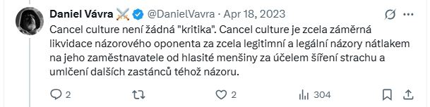 má tam agresivní útoky od anonymních účtů...