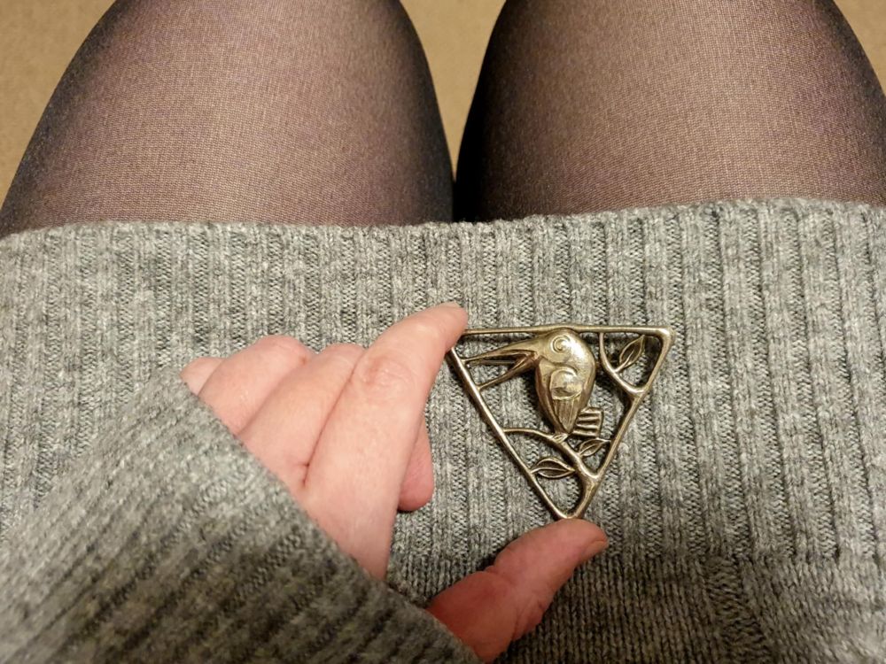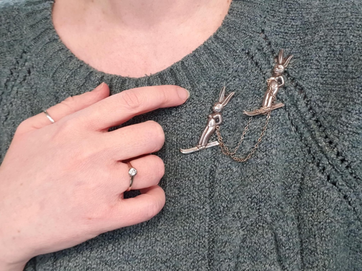 dneska jsem si oblíkla zaječice, tentokrát jak opravdu sjížděj svah. a ani jsem si je neužila, protože jsem se celej den nezastavila, a sjezdu si nikdo kromě jedný kolegyně ani nevšiml. tak jsem aspoň teď udělala fotku pro vás, a příště zase vyberu jinou brož, co tu ještě nebyla ;)