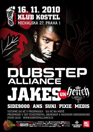 Prvním hostem Dubstep Alliance v klubu Kostel bude britský DJ & MC Jakes, majitel vydavatelství H.E.N.C.H Recordings, které má na kontě už nemálo úspěšných releasů.