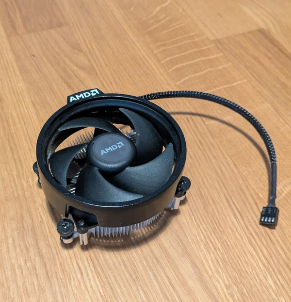 Základní chladič na CPU pro socket AM4/AM5 (možná i starší?), očištěný, používaný. (je to typ, který AMD dávalo k některým procesorům, tenhle byl konkrétně k Ryzen 5 5600X). Za odvoz z Prahy - Žižkova nebo Karlína