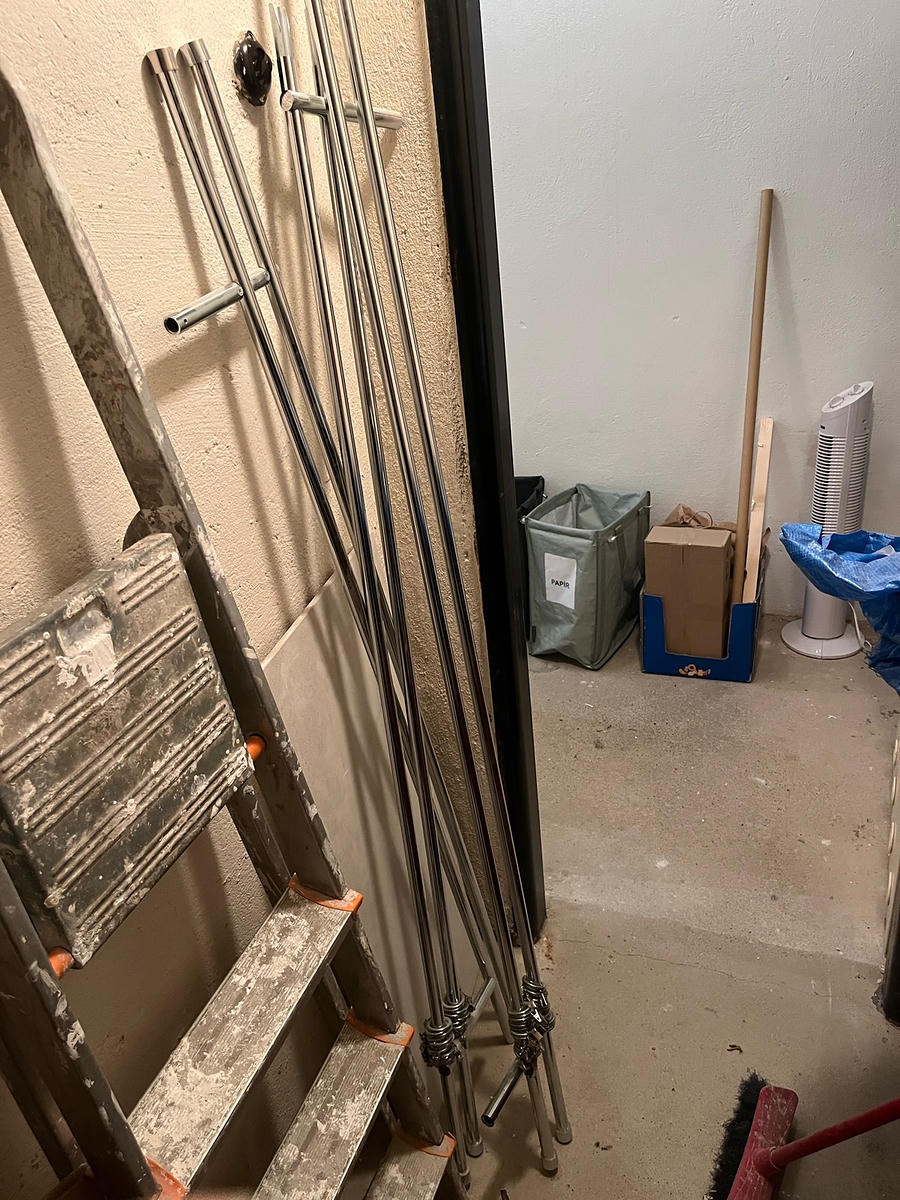 Supertěžký, super stabilní, přelakovaný na modro-bílo. Foto jsem žel nedohledal a aktuálně je zavalen tunou věcí…