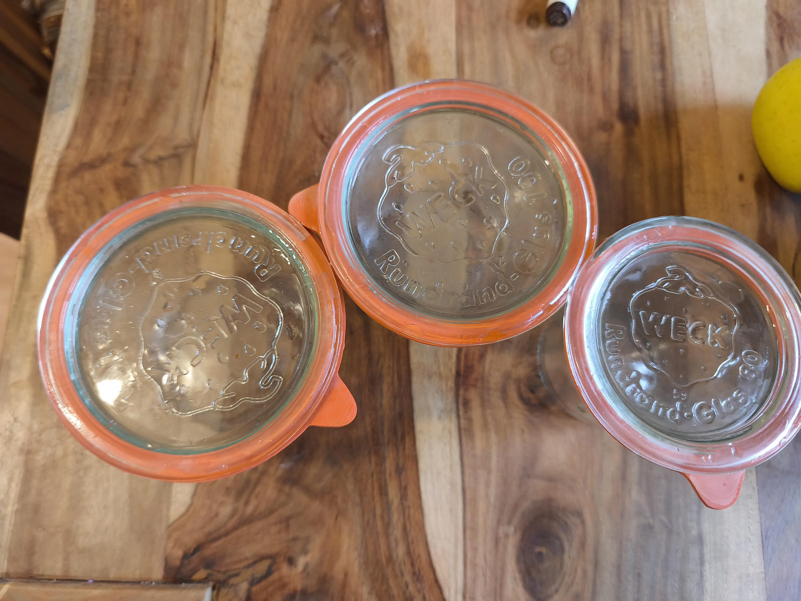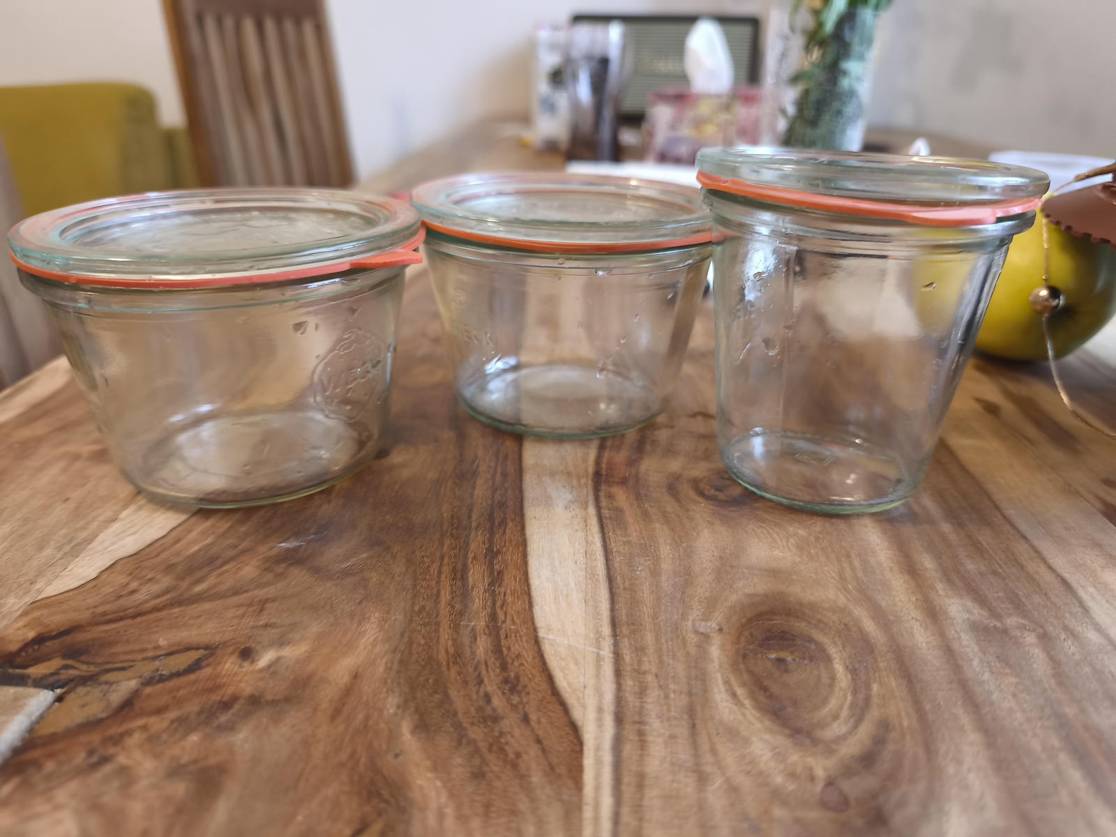 Za odvoz nabízím 3 zavařovačky Weck. Nemám k nim clipy, ty je potřeba dokoupit.