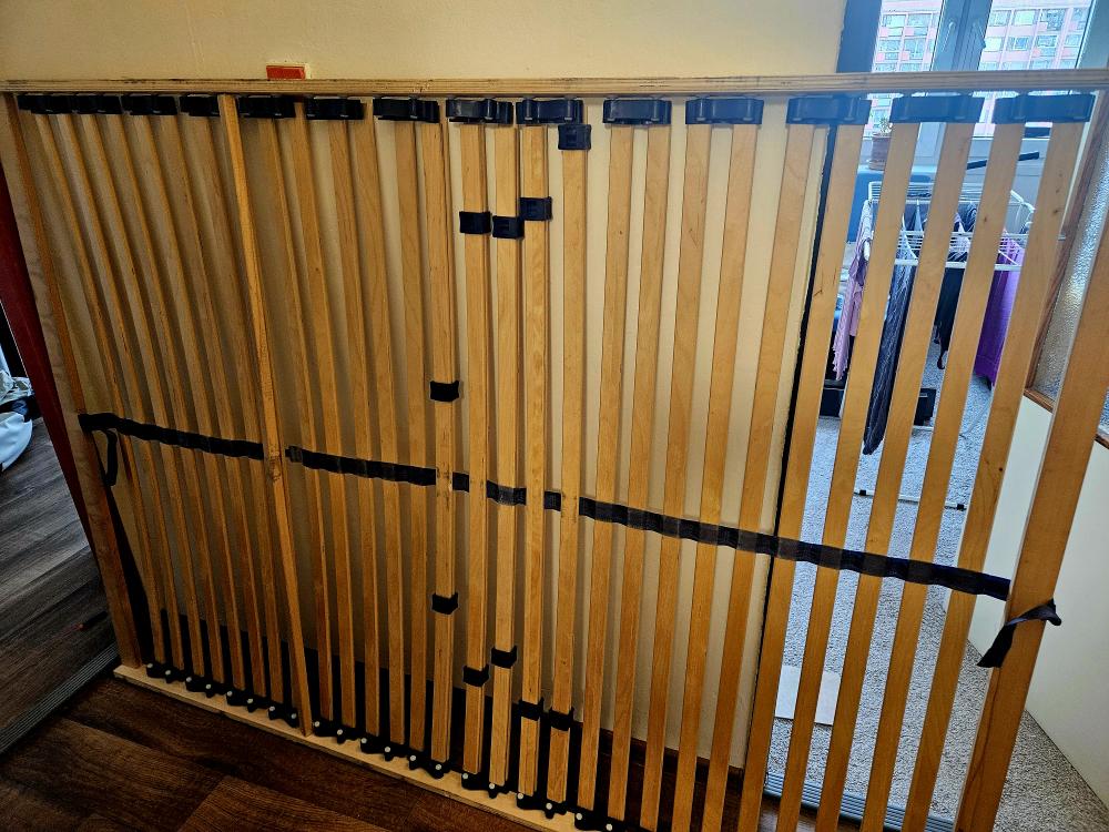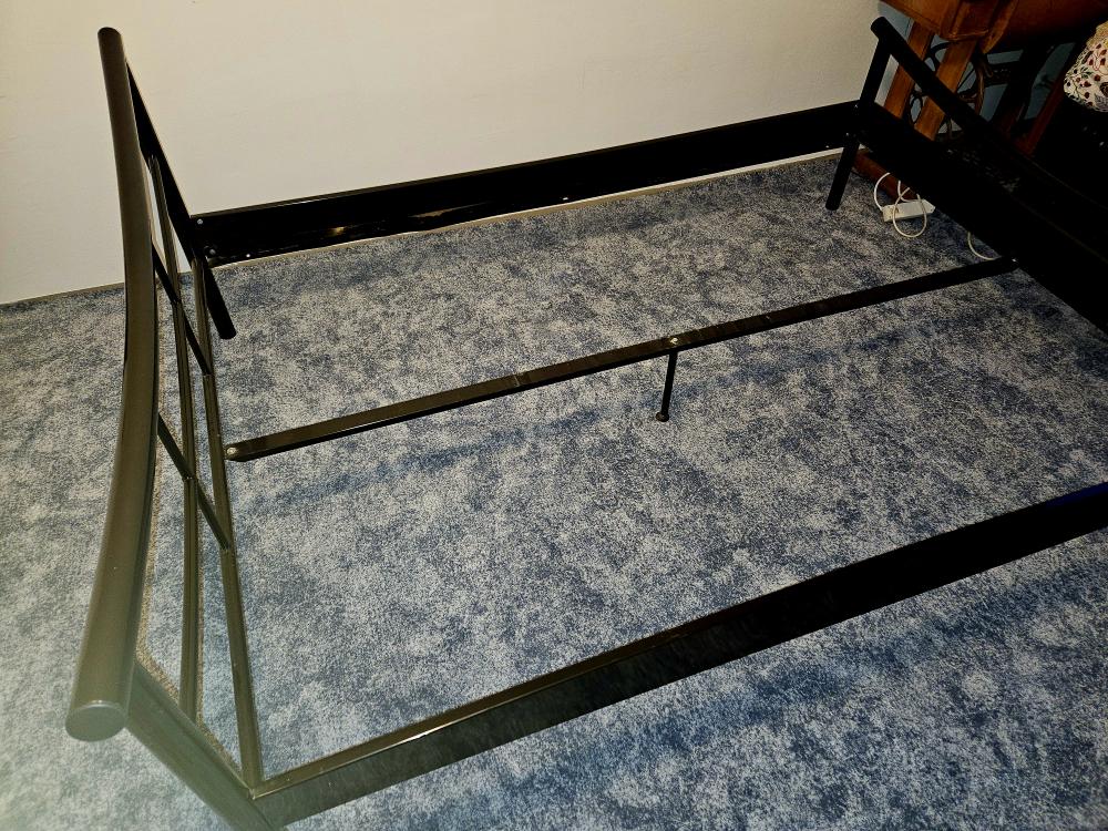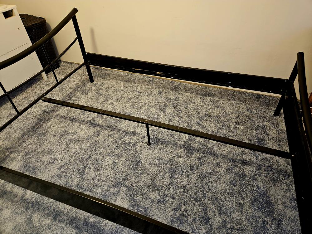 za odvoz nabízím kovový černý rám postele (šířka 145 cm, délka 206 cm, výška pelestě 40 cm) a rošt do něj. (rám je rozložený, rošt v celku)