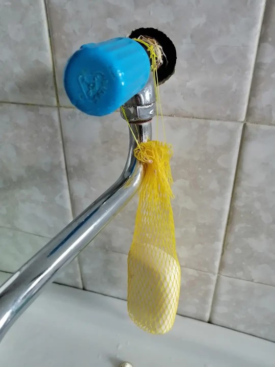 obal na mydlo byl nahodou skvely, slouzil zaroven jako kartacek. Byla to mrizka od lahve na kyselinu.
