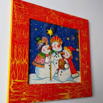 Plastický obraz 23 x 23 cm . Dřevěný rám . Vzadu kovový úchyt k zavěšení .