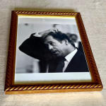 Originální fotografie z autogramiády po vernísáži . Kovový rám 22 x 31 cm . Zaskleno . Vzadu kovový úchyt k zavěšení + podpěra k postavení .