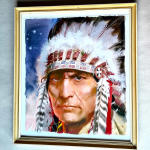 Obraz 49 x 60 cm . Dřevěný zdobený rám . Zaskleno . Vzadu kovový úchyt k zavěšení .