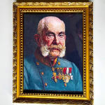 Erb s původní osmicípou černou hvězdou na zlatém poli / později byla jen šesticípá / . Dřevěný zlacený rám . Zaskleno . Vzado kovový úchyt k zavěšení .