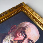 Obraz 23 x 29 cm . Dřevěný zdobený zlacený rám . Zaskleno plexi . Vzadu kovový úchytt k zavěšení .